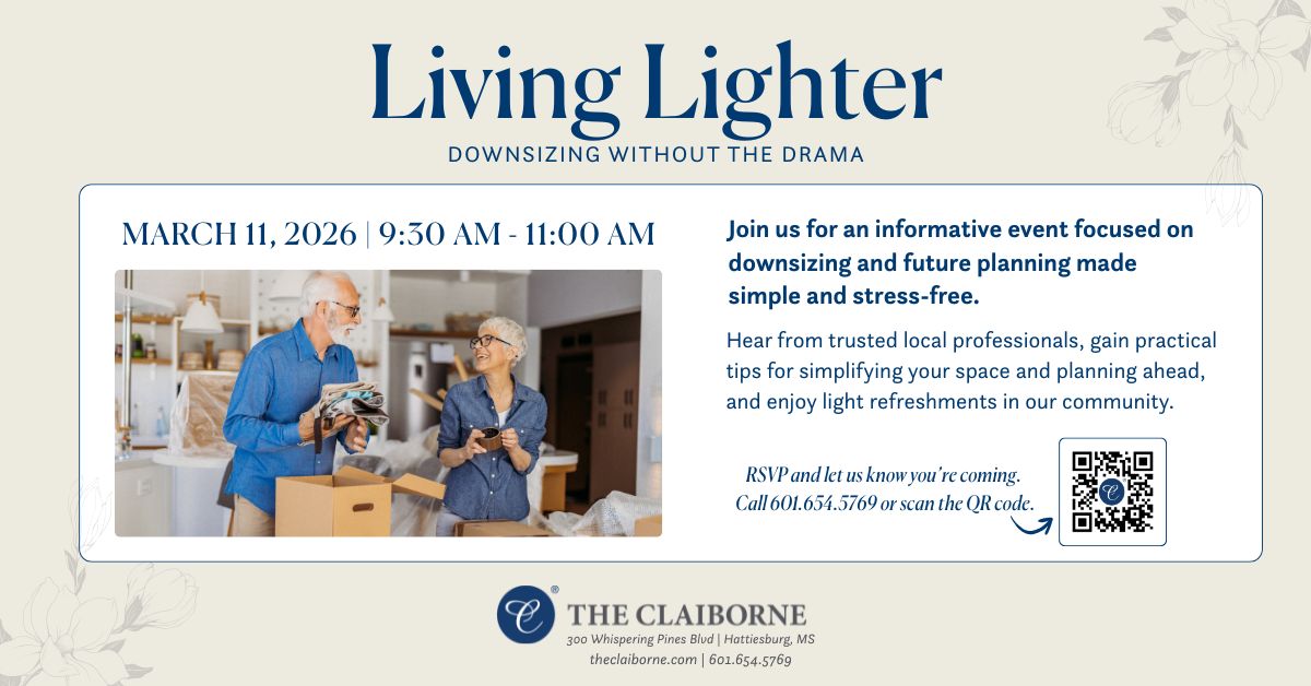 Join the Claiborne at Hattiesburg for a free, informative event focused on downsizing and future planning made simple and stress-free.