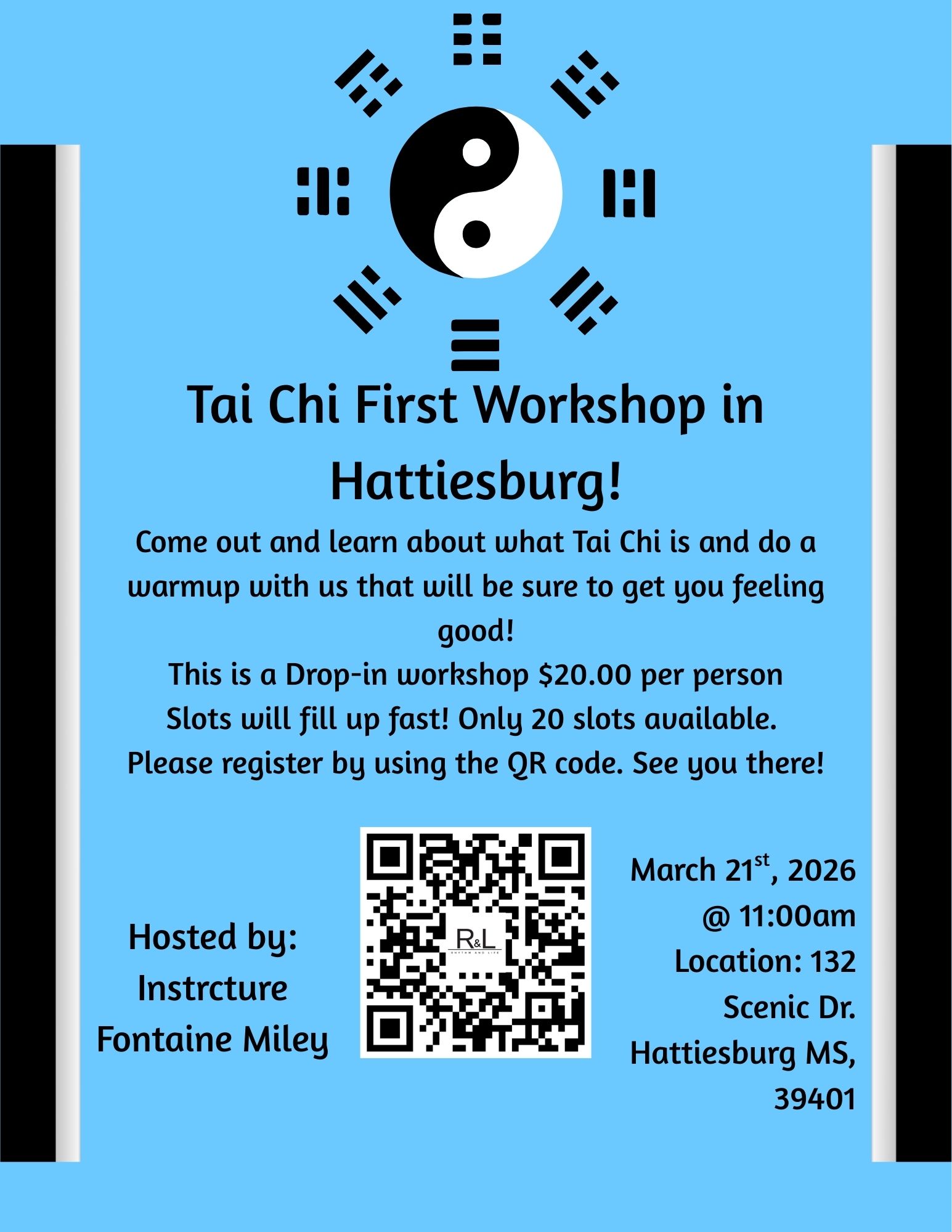 This is an introduction to Tai Chi event where participants will have the opportunity to learn basic breathing techniques, warmups and postures. Tai Chi is a practice that focuses on balance and full body strengthening. In this workshop we will also explore how to apply movements for daily wellness as well as for self-defense.