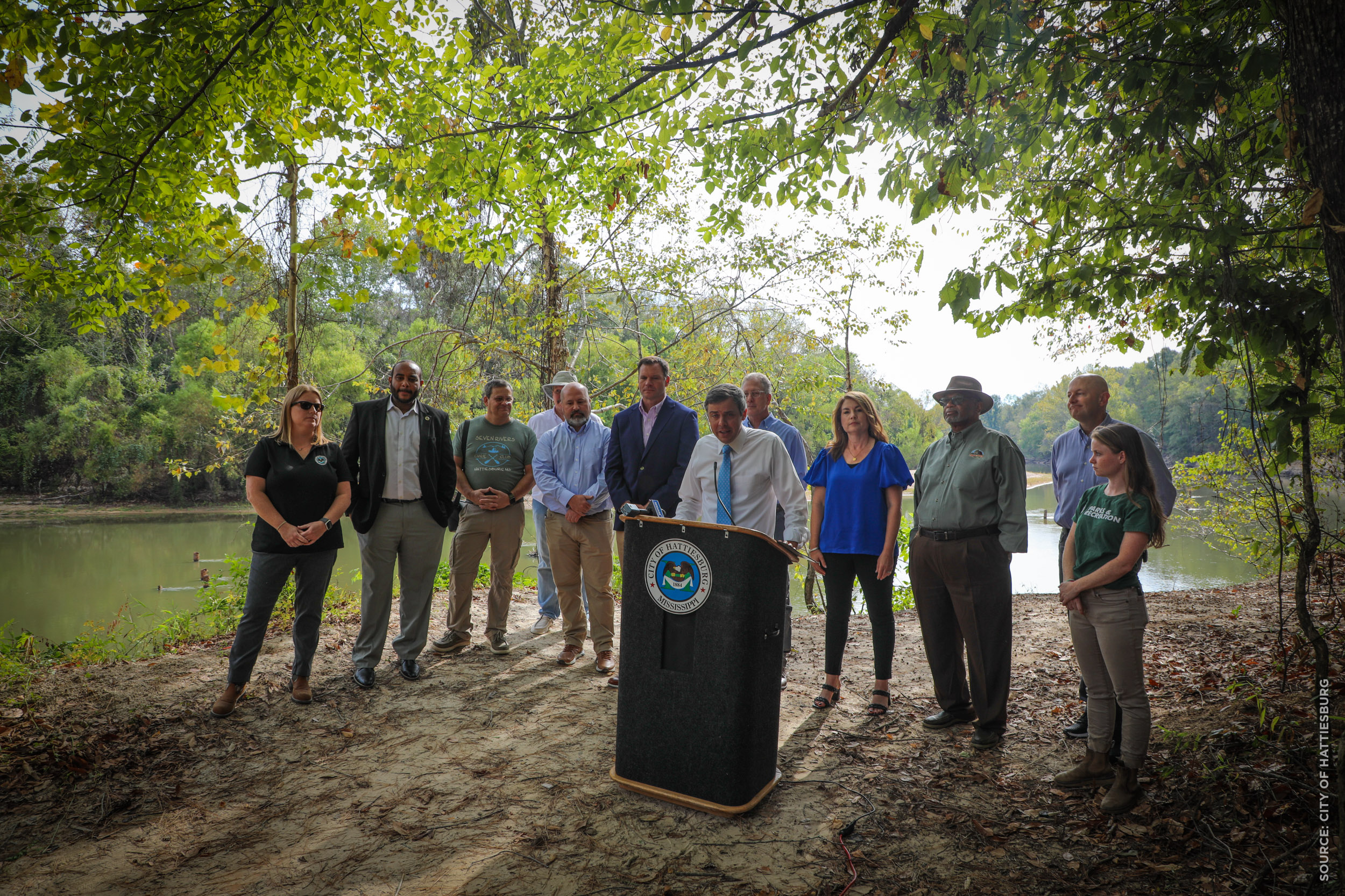Hattiesburg, Mississippi – On Tuesday, October 10, 2023, Mayor Toby Barker was joined by representatives from VisitHATTIESBURG, the Piney Woods Conservation Group, Forrest County Board of Supervisors and Hattiesburg-area legislative delegation to announce a $480,000 grant from the Mississippi Outdoor Stewardship Grant Program to improve public access to the Leaf River via Sims Road in Southeast Hattiesburg.